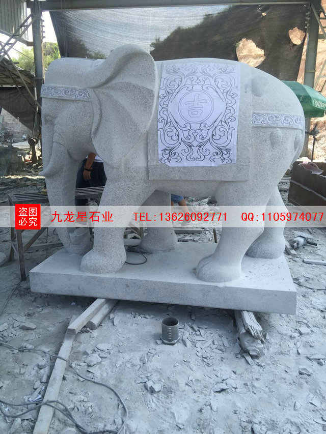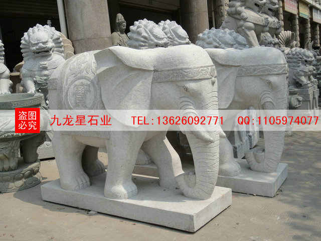 石雕大象在中國的道觀,寺廟,工廠,家庭,園林及古代皇陵上都會看到它。其可用的石材有天青石、霞玉、四川漢白玉、白色大理石、花崗巖等。他也是寺院、佛教里最常見的吉祥雕刻。